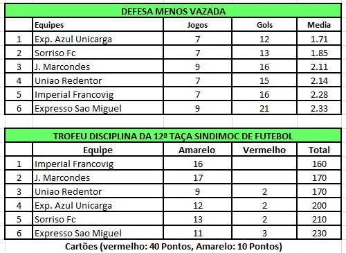 CONFIRA A ATUALIZAÇAO DAS TABELAS DE ARTILHEIRO, DEFESA MENOS VAZADA E TROFEU DISCIPLINA APOS TERMINO DA COMPETIÇAO.