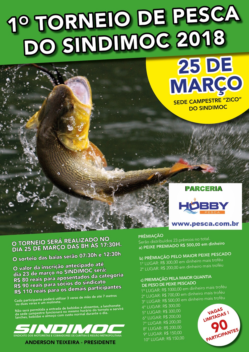 Você é bom de pescaria? Já pensou em ganhar até MIL REAIS pescando? Então corre e se inscreva pro 1º Torneio de Pesca do Sindimoc! A competição começa no dia 25 de março e...
