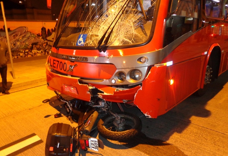 Início da madrugada desta terça-feira (19/03), um gravíssimo acidente aconteceu na confluência das Ruas Lourenço Pinto com André de Barros, centro de Curitiba, envolvendo uma motocicleta com placa de Curitiba, pilotada por Lauro Antônio Schleder Gonçalves, de 46 anos, e um ônibus biarticulado que fazia a linha Centenário/Campo Comprido.