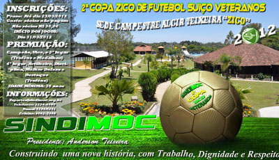 Na noite desta quarta-feira (04/03), foi realizado o arbitral da 3ª Copa Zico de Futebol Veteranos 2013, na sede do SINDIMOC, com a presença de representantes da maioria da equipes que participarão da competição. No evento foi apresentado pelo secretário de esporte da entidade, Marcelo Thomás, o regulamento e normas que regerá o campeonato, que inicia neste sábado, dia 06 de abril, às 13:45 h, na sede campestre Alcir Teixeira (Zico).