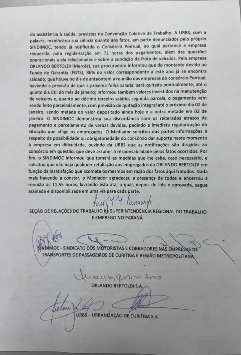 Hoje, 31/12/25, Ricardo Sales, Presidente do Sindimoc, juntamente com a Assessoria Jurídica e o Presidente da Fetropar, exigiu, em Audiência de Mediação na SRT-PR,que a Empresa Orlando Bertold efetuasse o pagamento imediato do 13º salário dos funcionários ainda não quitados integralmente.