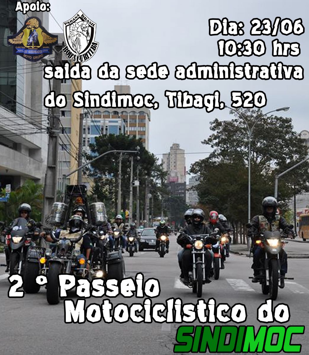 SINDIMOC convida os Motoristas, Cobradores, amigos e admiradores da categoria que possuam motocicletas para participarem do 2º PASSEIO MOTOCICLÍSTICO DO SINDIMOC.