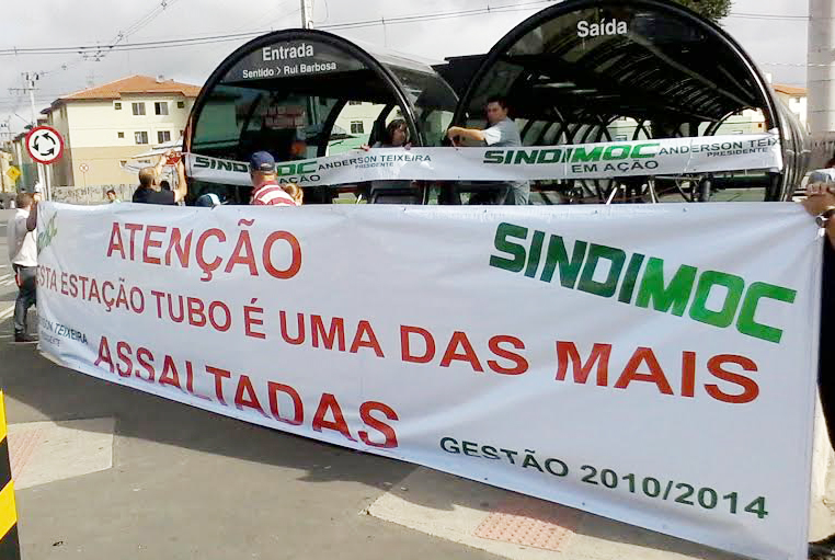 Sindimoc indignado com falta de segurança, instala faixa em Estação-Tubo em Curitiba