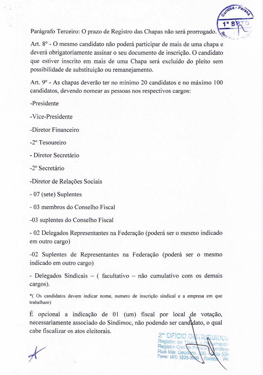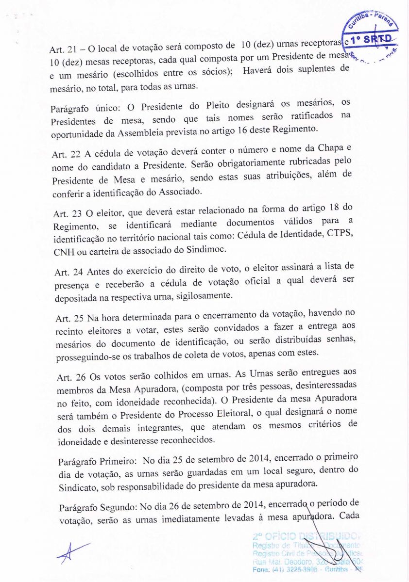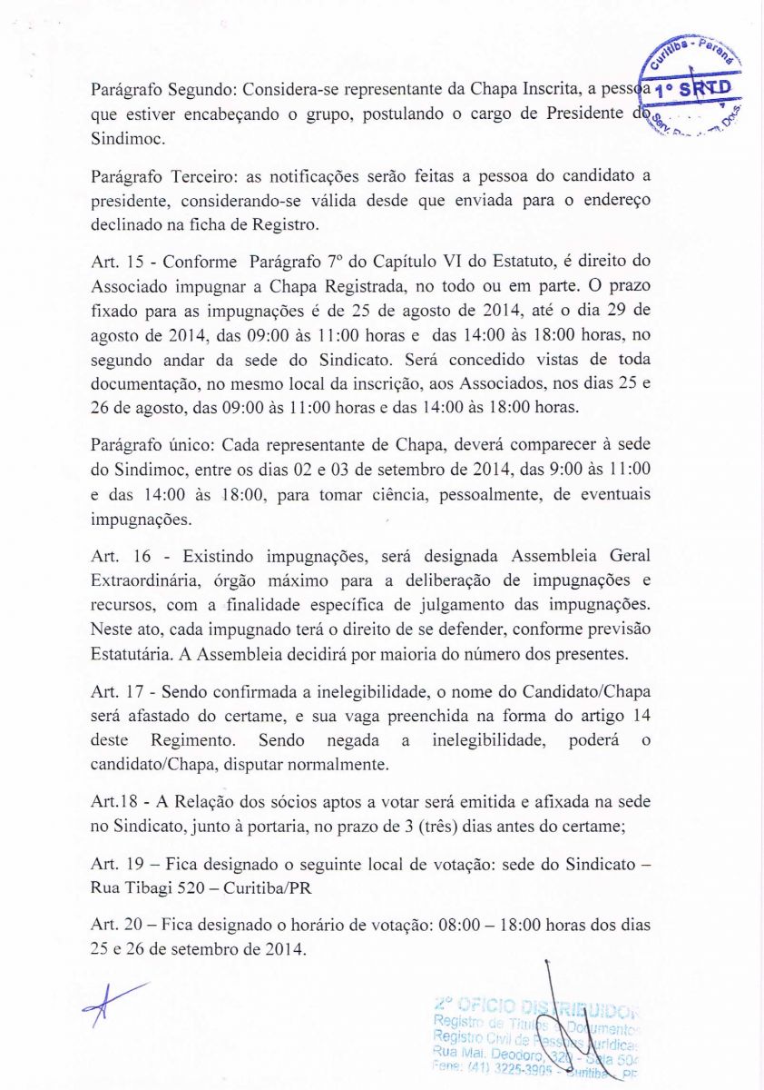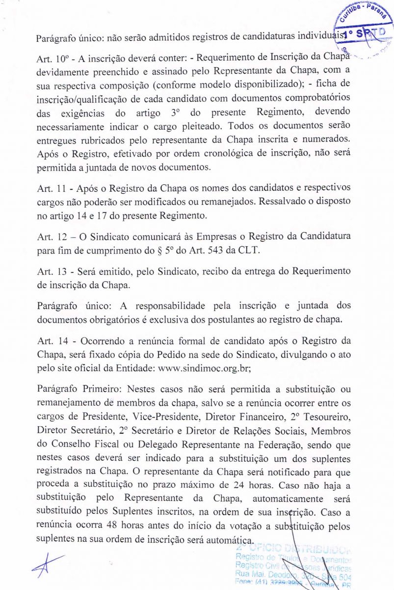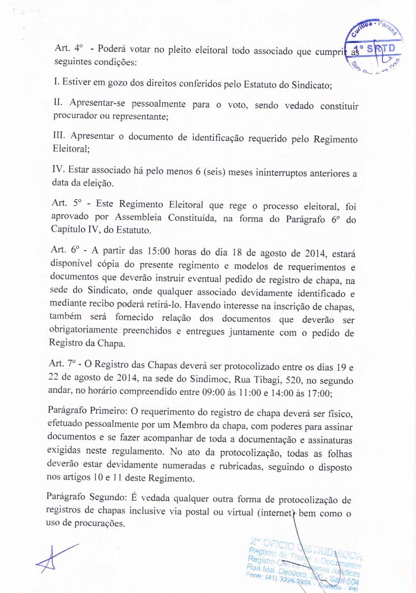 ABAIXO CÓPIA DO REGIMENTO ELEITORAL DO SINDIMOC: