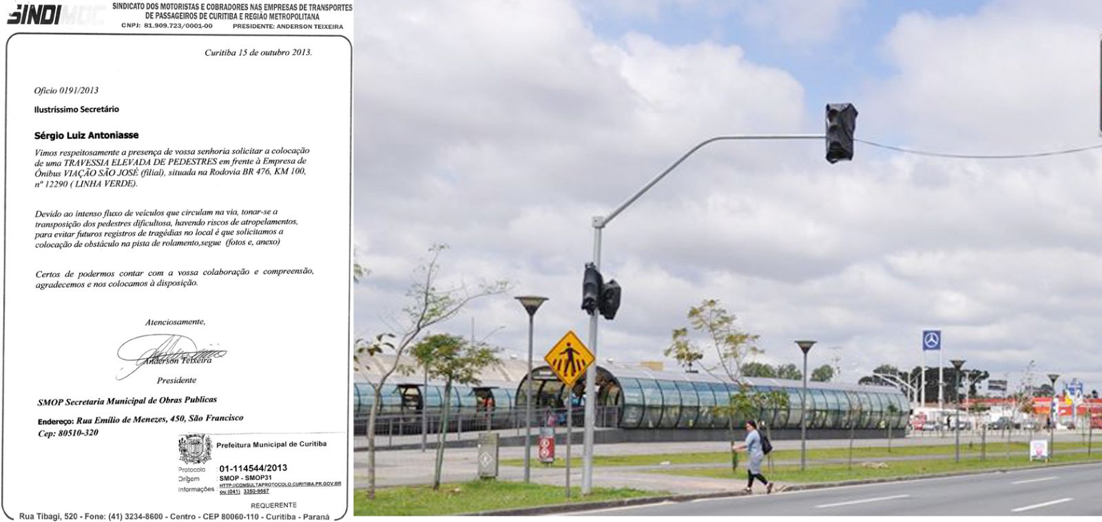 Sindimoc enviou ofício à Secretária de Obras de Curitiba solicitando sinalização em frente à Empresa São José Filial, localizada na Linha Verde, onde os trabalhadores da empresa encontram dificuldades de realizar a travessia por conta do grande movimento de veículos na via.