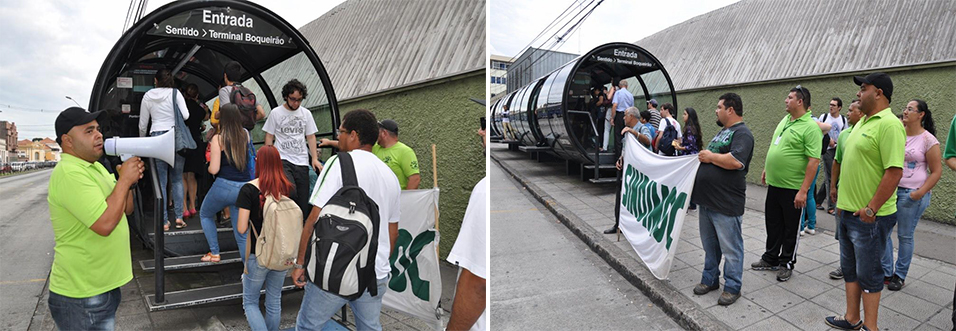 Sindimoc se manifesta na Estação-Tubo UTFPR (Cefet)