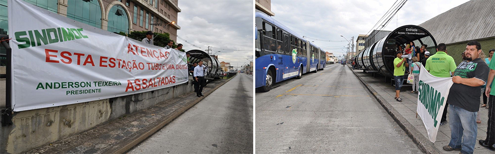 Em mais uma ação promovida pelo Sindimoc, passageiros do transporte coletivo que utilizam a Estação-Tubo UTFPR (Cefet), no centro de Curitiba, tomaram conhecimento da falta de segurança naquela local. O Tubo está entre as estações mais visitadas por assaltantes e os Cobradores cansados de serem roubados procuraram o Sindimoc e este de imediato decidiu fazer um manifesto pedindo mais segurança, não só para os operadores do transporte coletivo, bem como para toda a população que circula no entorno do Cefet.