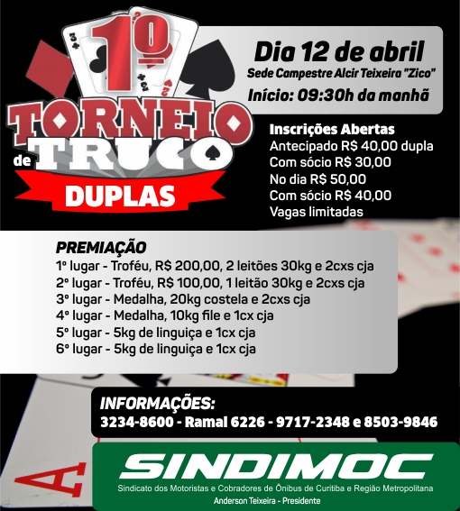 Inscreva-se no 1º torneio de truco do Sindimoc