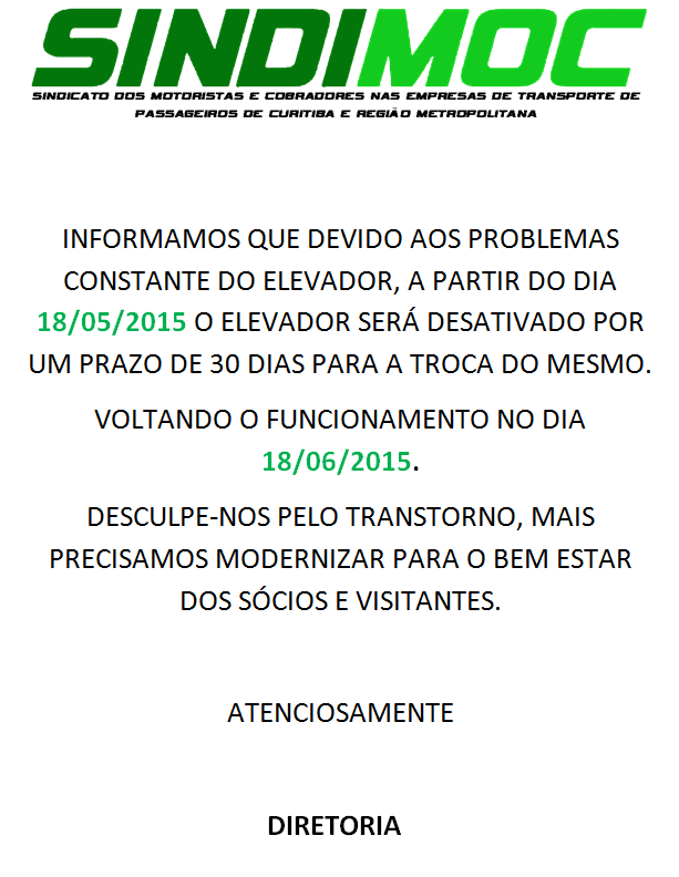 Atenção filiados: Sobre o funcionamento do elevador